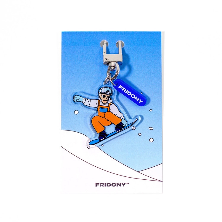 스노우보드 타는 아이도니 아크릴 키링입니다. 가방이나 파우치, 에어팟 케이스 등에 포인트로 달아주면 좋습니다. 힙해지고 싶다면? 프라이도니!