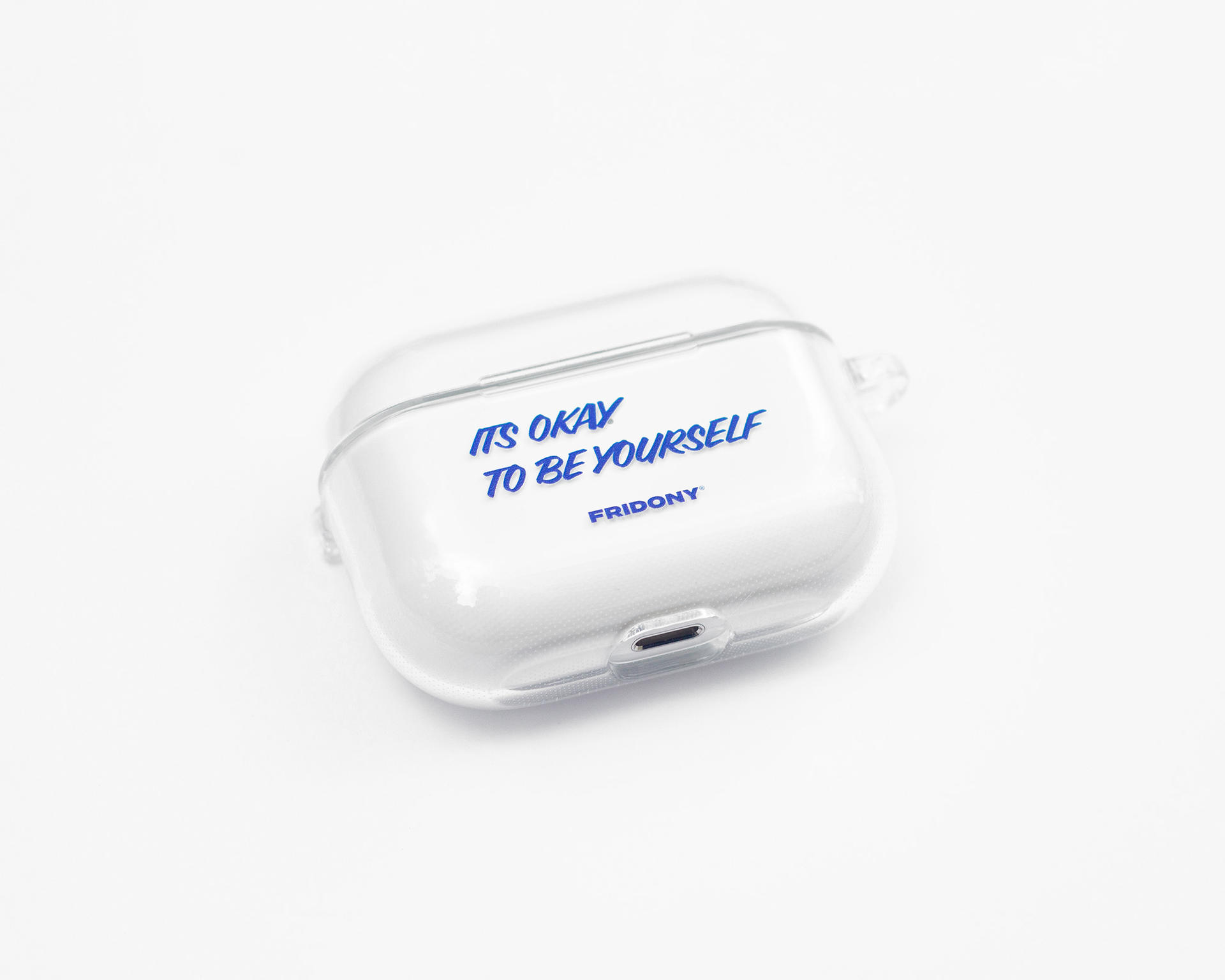 It's Okay To Be Yourself! 프라이도니 슬로건이 적힌 깔끔한 에어팟 프로 케이스입니다. 심플함과 유니크함의 무드를 동시에 느껴보세요.