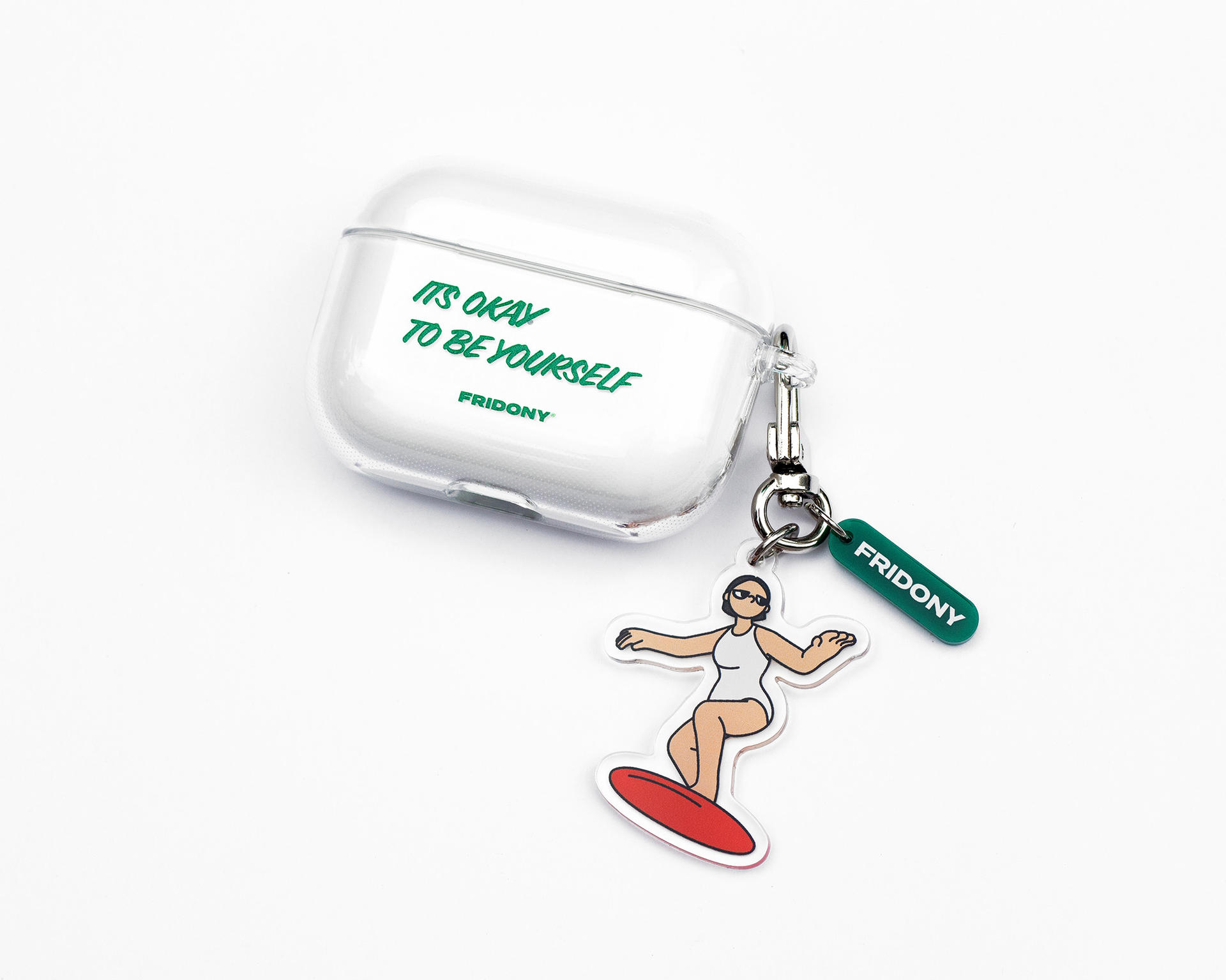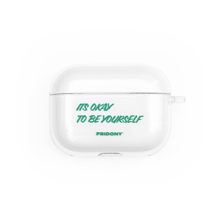 It's Okay To Be Yourself! 프라이도니 슬로건이 적힌 깔끔한 에어팟 프로 케이스입니다. 심플함과 유니크함의 무드를 동시에 느껴보세요.